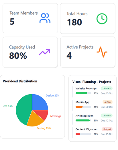 Who's actually available? Who's overbooked? Manual capacity planning wastes hours and causes burnout.